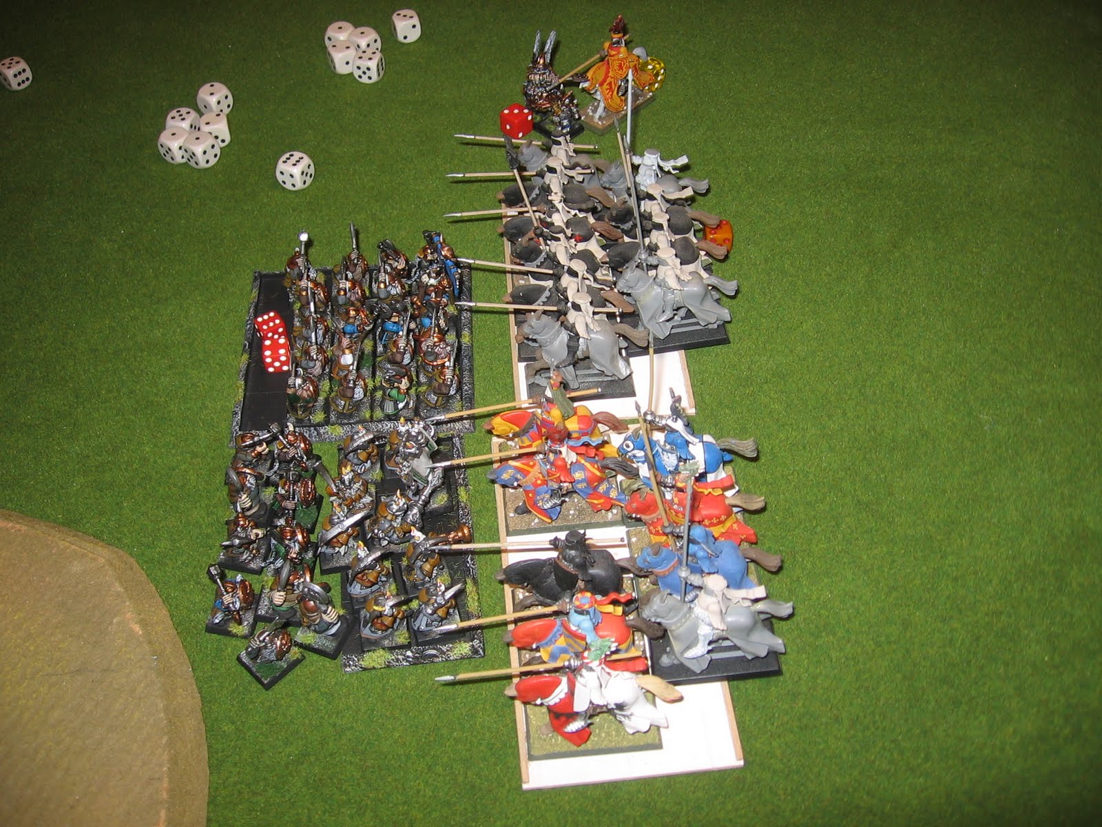 One of the Dwarf units was a 'horde'.. a 40 strong unit. Andy attacked it with both units of Knights and the victory was his.