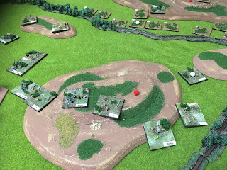 This was another excellent game fought with the Spearhead rules, using our 6mm armies. The vehicles and infantry were from Heroics and Ros, and the forces were developed using Keith McNelly's scenario generation system. Keith was attacking using his German force, and I was defending using my BEF force.