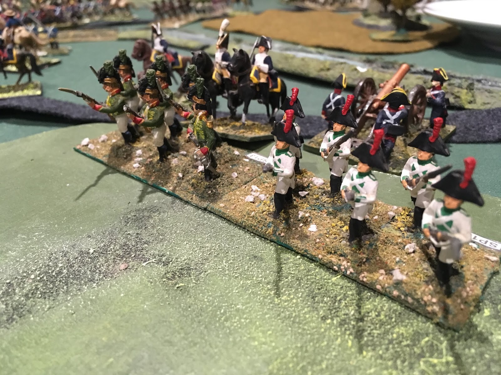 An overview of the battle field after the first few turns.. the centre and right of the Anglo Spanish army. The British attack has stalled around the village of Constantia at the top of the photo